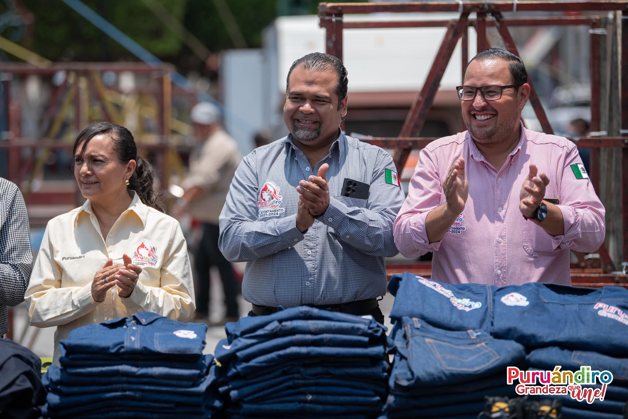 Puruándiro ,ichoacán a 22 de Mayo de 2023. El alcalde de Puruándiro Víctor Manuel Vázquez Tapia encabezó este lunes en la plaza principal, la entrega de uniformes y botas a trabajadores del Departamento de Servicios Públicos, así como 30 contenedores, con la finalidad de mejorar el servicio de limpia de nuestro municipio.