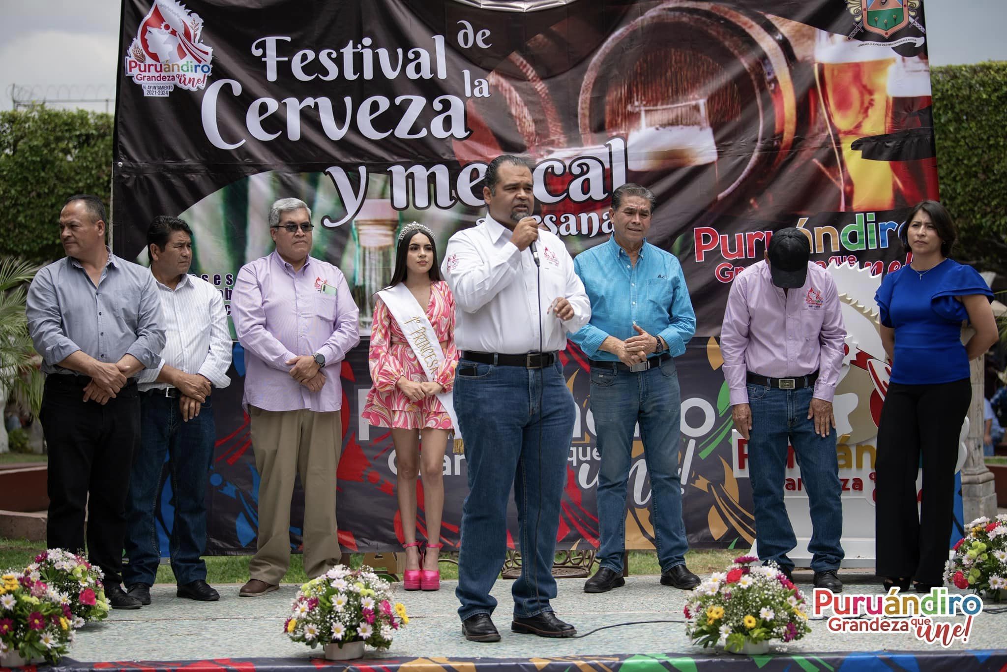 Puruándiro Michoacán a 21 de Mayo de 2023. El alcalde de Puruándiro Víctor Manuel Vázquez Tapia acudió, en compañía de regidores, a la inauguración del Festival de la Cerveza y Mezcal artesanal, realizado en la calle peatonal de la plaza principal, mismo que se estará llevando a cabo los días 21 y 22 de mayo.