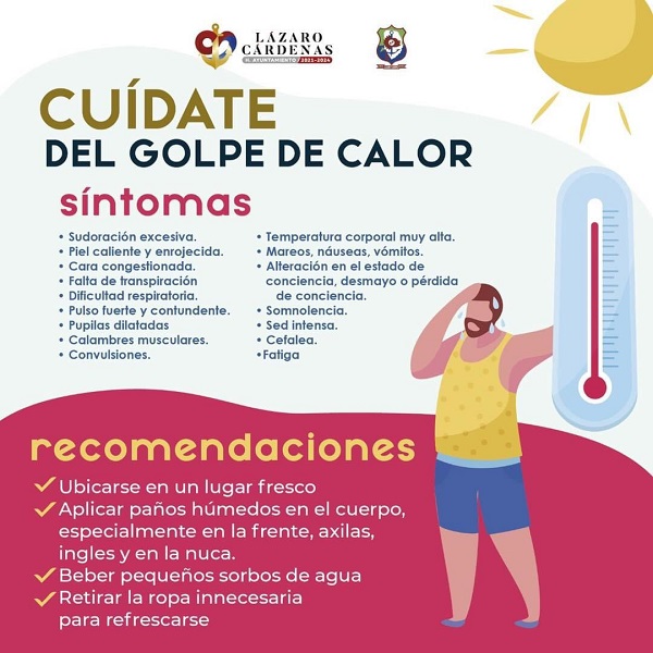 Cd. Lázaro Cárdenas, Michoacàn a 13 de Junio del 2023.- Ante el anuncio de que la tercera onda de calor prevalecerá en la región con temperaturas superiores o máximas a 40 grados centígrados; la Unidad de Protección Civil Municipal (PCM) exhorta a la población a tomar precauciones, sobre todo en niños y adultos mayores, para evitar un “golpe de calor”.