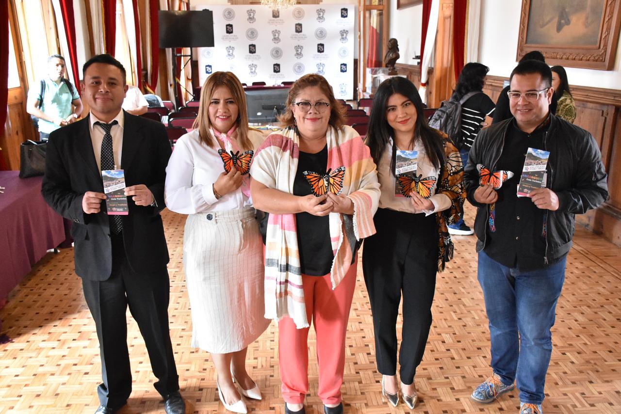 “Estamos aquí para hacerles una invitación a que visiten Angangueo, un lugar hermoso, cuyo principal atractivo es el Santuario de las mariposas Monarcas, emblema de Michoacán y atracción turística que recibe año con año a miles de visitantes no solo del interior de la entidad, sino de todo el país e incluso del extranjero”, agregó.