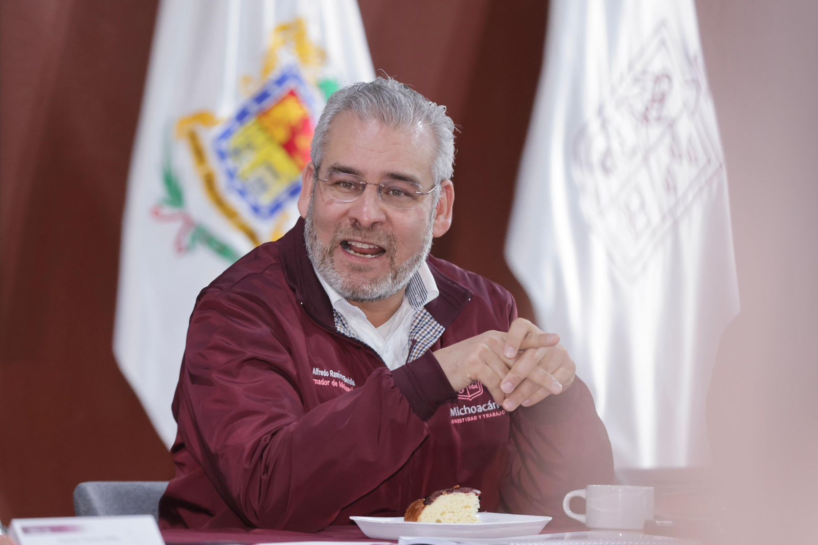 Morelia, Michoacán a 27 de Enero de 2024. El gobernador Alfredo Ramírez Bedolla señaló que ha sostenido diálogo con los mandatarios de Guanajuato y Jalisco, Libia Dennise García Muñoz Ledo y Jesús Pablo Lemus Navarro, respectivamente, para firmar convenios en materia de seguridad y desarrollo económico.