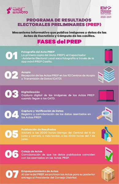 Dicho instrumento pretende dotar de confianza a la ciudadanía michoacana durante la jornada comicial, permitiendo dar a conocer en tiempo real a través de Internet, los resultados preliminares de las elecciones de Gubernatura, diputaciones locales y los ayuntamientos la misma noche de la Jornada Electoral en la que cualquer ciudadana y ciudadano lo podrá consultar.