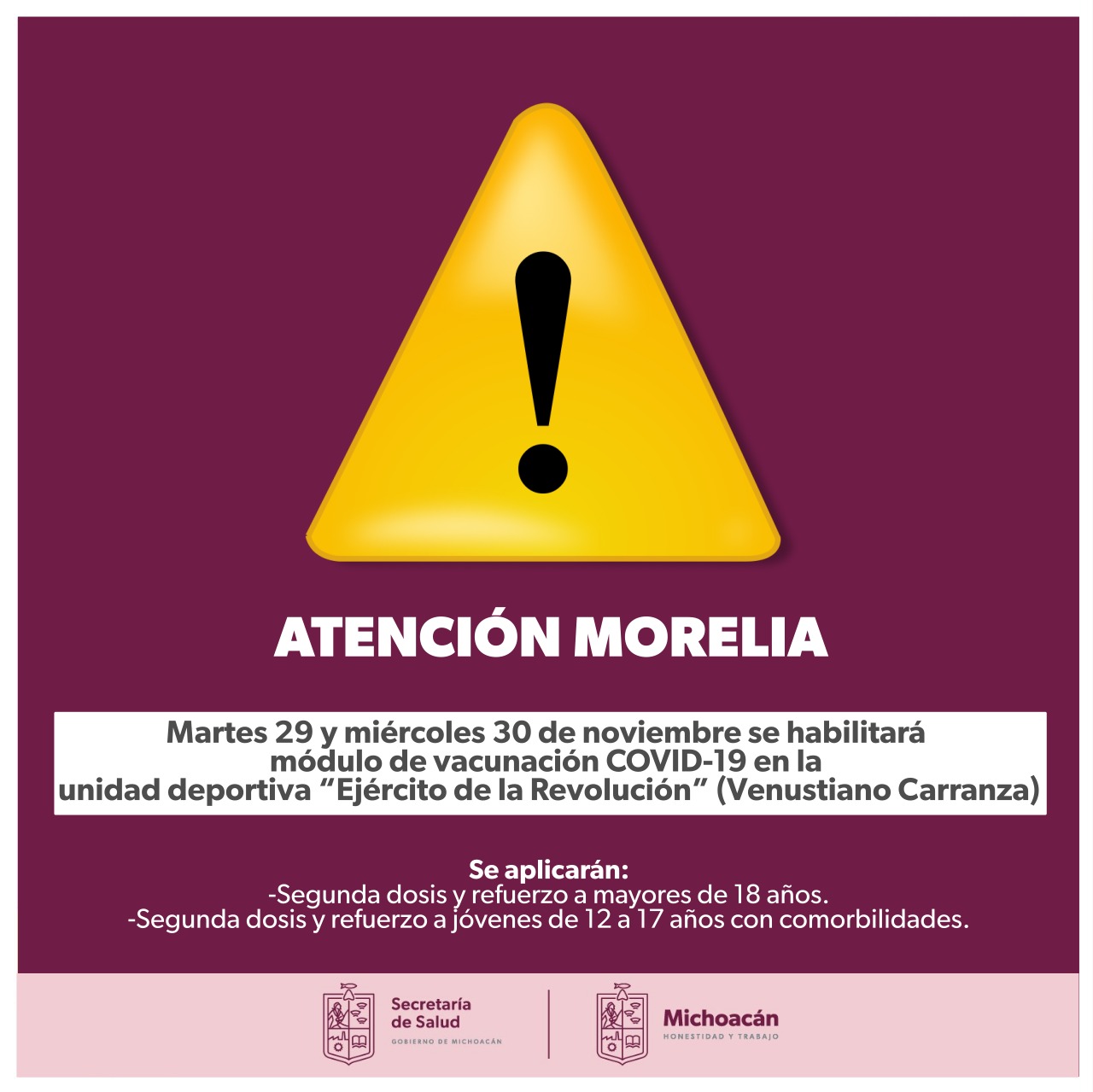 Morelia, Michoacán a 28 de Noviembre del 2022.- Para terminar con el rezago en vacunación, la Secretaría de Salud de Michoacán (SSM) abrirá durante dos únicos días un macro módulo para inmunizar a todos los mayores de 18 años y a los adolescentes de 12 a 17 con alguna comorbilidad, que requieran de su refuerzo adicional o bien les haga falta la segunda dosis de Pfizer.