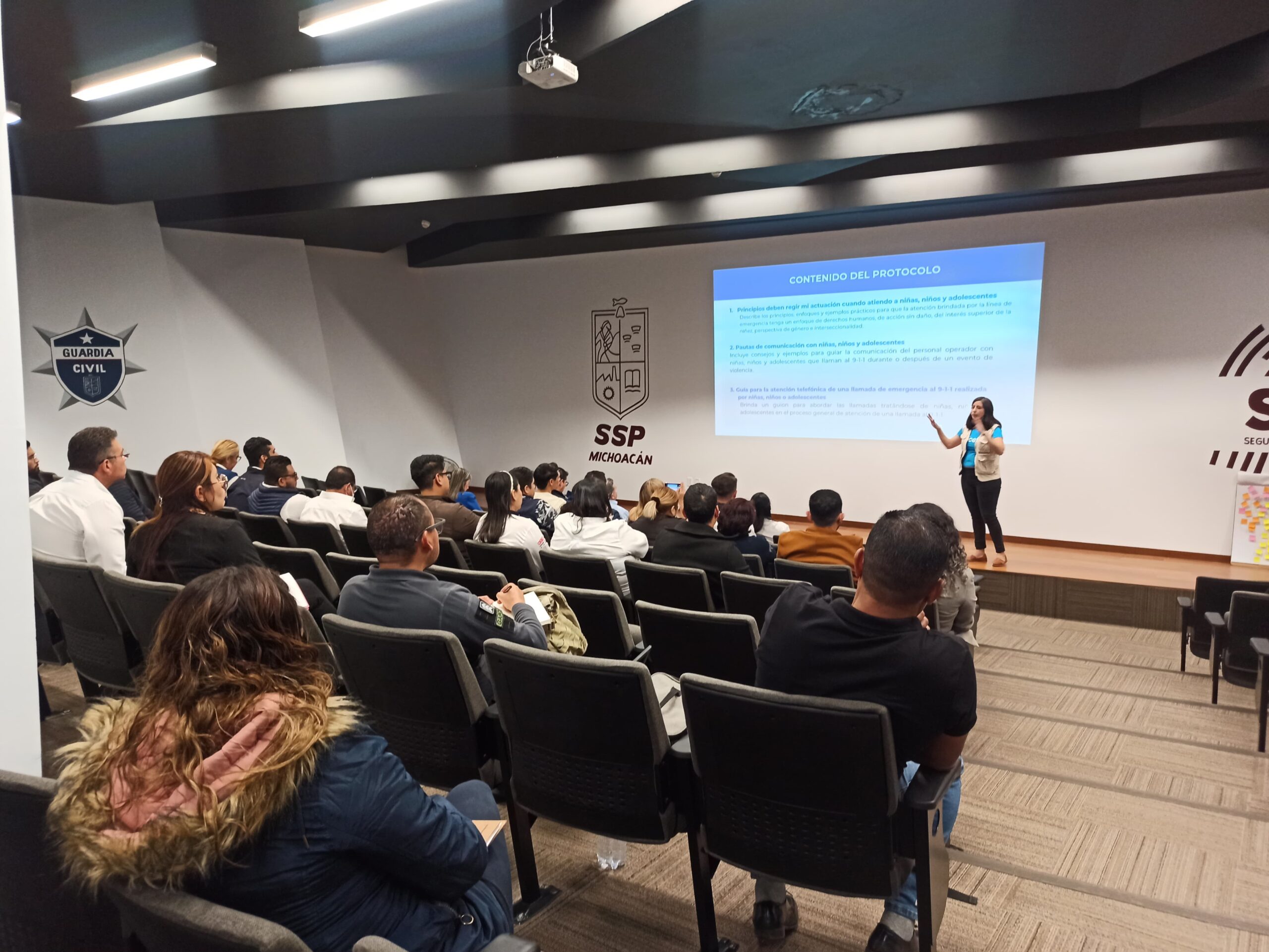Morelia, Michoacán, 11 de marzo de 2024.- Con el objetivo de actualizar al personal en protocolos de atención para recibir llamadas al número de atención de Emergencias 911 relacionadas a incidentes de violencia contra niñas, niños y adolescentes, la Secretaría de Seguridad Pública llevó a cabo el proceso formativo sobre la atención especializada en estos casos, de la mano del Fondo de las Naciones Unidas para la Infancia (Unicef).