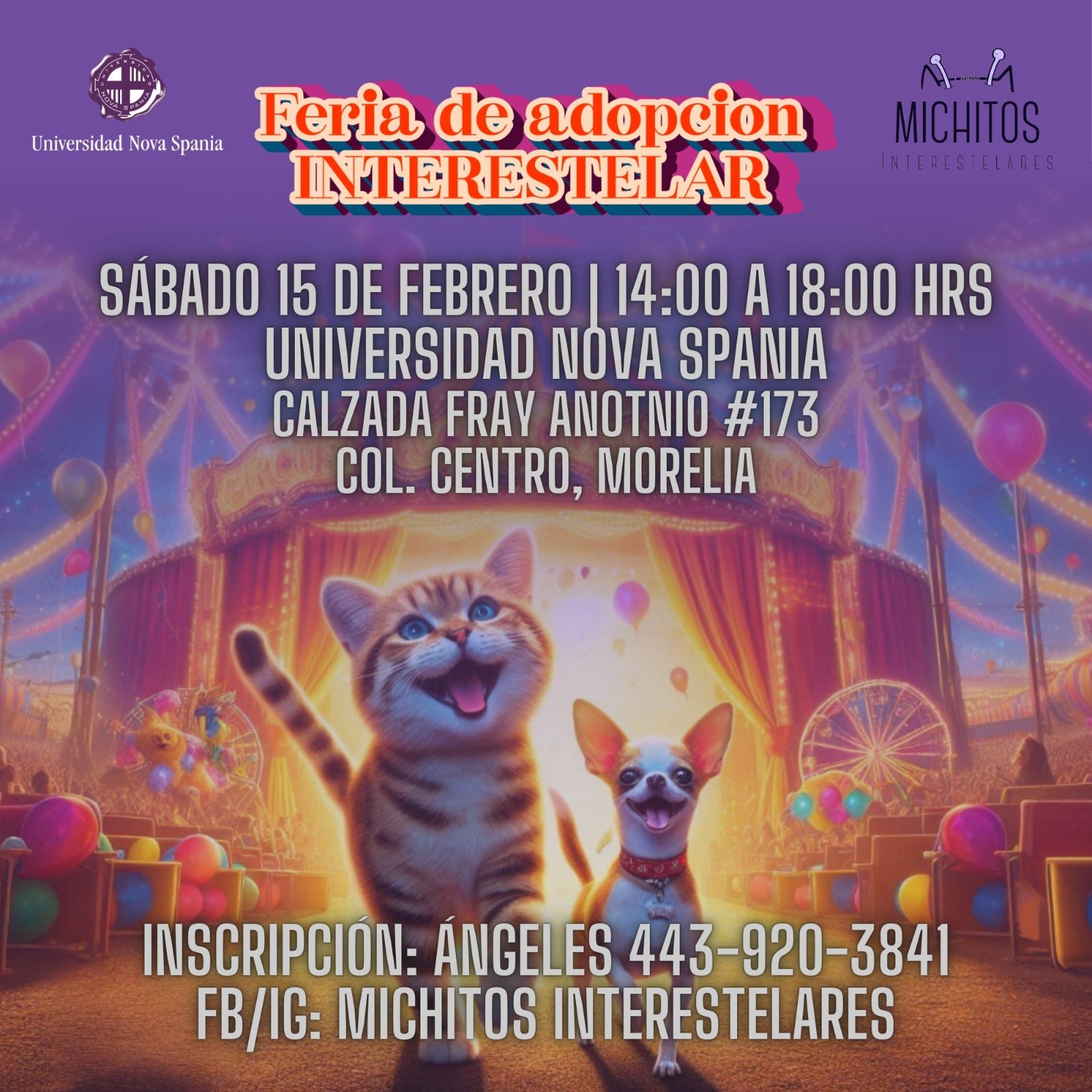 Morelia, Michoacán, 10 de Febrero de 2025.- Con el objetivo de darles una segunda oportunidad a decenas de lomitos y michis en busca de un hogar, la asociación civil «Michitos Interestelares», realizará una feria de adopción el próximo sábado 15 de febrero.