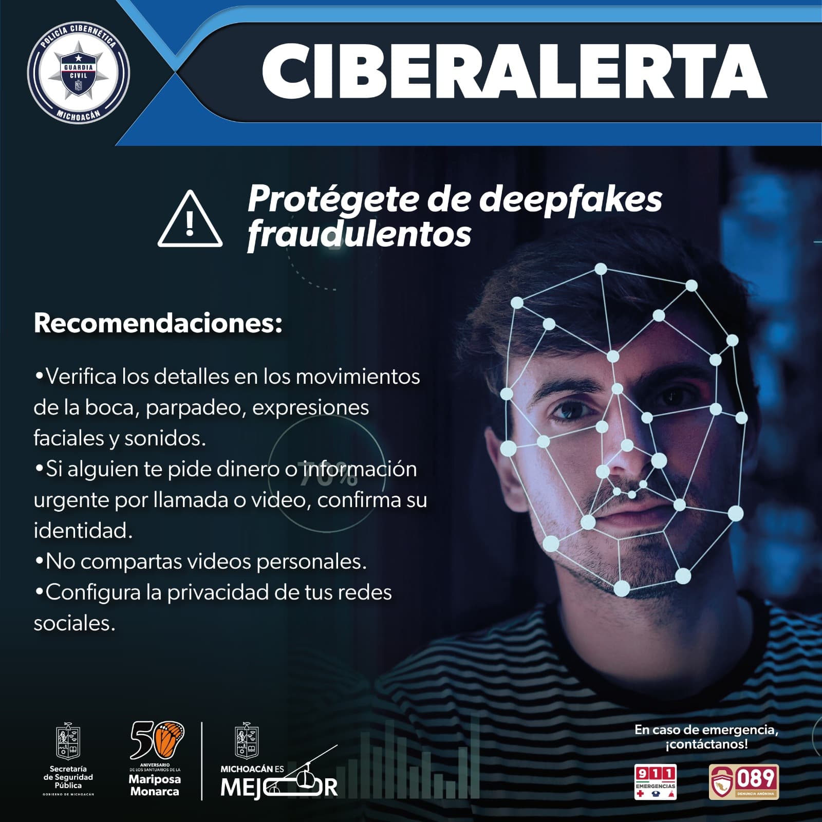 Morelia, Michoacán, 19 de marzo del 2025.- Ante el crecimiento de aplicaciones de Inteligencia Artificial (IA) y su fácil acceso para todas y todos, la Secretaría de Seguridad Pública (SSP) exhorta, para que adopten medidas preventivas y así evitar confusiones al identificar contenidos falsos y protegerse de posibles ciberdelitos.