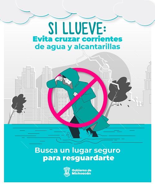 Morelia, Michoacán a 06 de Agosto de 2021.- La Secretaría de Gobierno por conducto de la Coordinación Estatal de Protección Civil, invita a las y los michoacanos a tomar medidas de prevención y autocuidado ante los pronósticos de lluvias en la entidad.