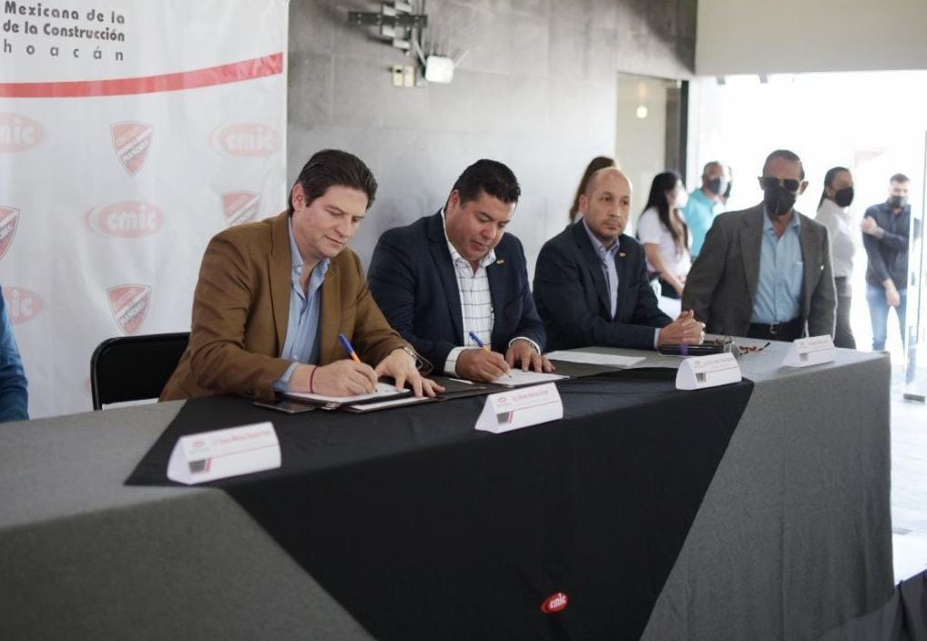 Ante el presidente de CMIC Michoacán, Antonio Tinoco Zamudio, la presidenta honoraria del DIF Morelia, Paola Delgadillo, el Tesorero, Alberto Guzmán Díaz, entre otros representantes de la cámara y funcionarios municipales, Alfonso Martínez ofreció coordinación a los constructores para mejorar la infraestructura en la capital.