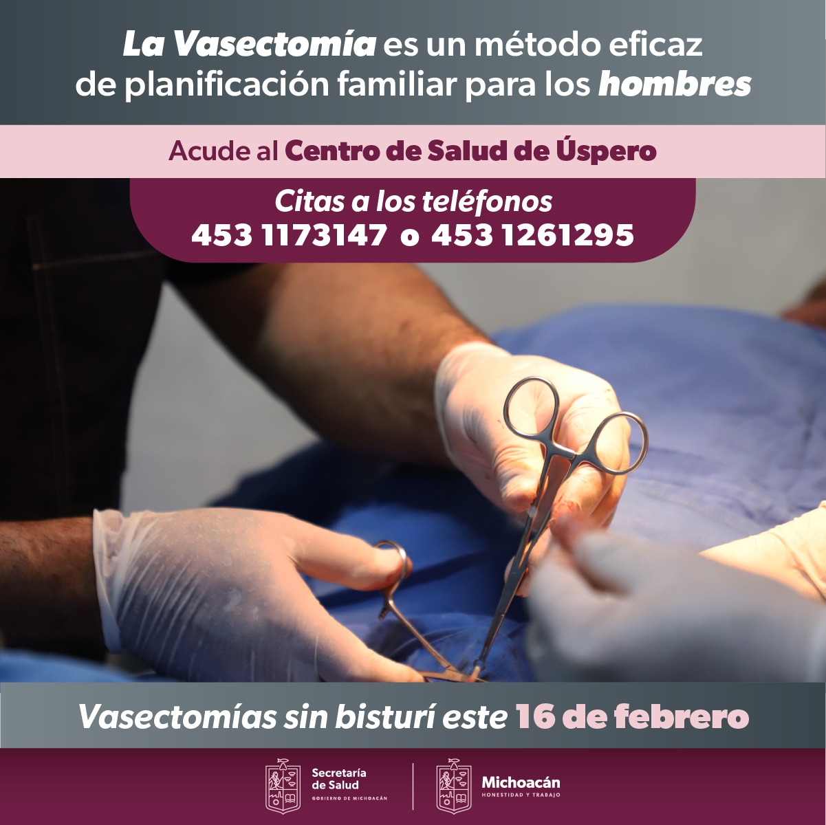 La SSM recuerda a la población que las vasectomías sin bisturí pueden solicitarse durante todo el año en los centros de salud de Morelia, Jacona, Purépero, Venustiano Carranza, Zitácuaro, Hidalgo y La Piedad, así como en los hospitales generales de Tacámbaro, La Piedad, Nueva Italia, Lázaro Cárdenas y Tuzantla
