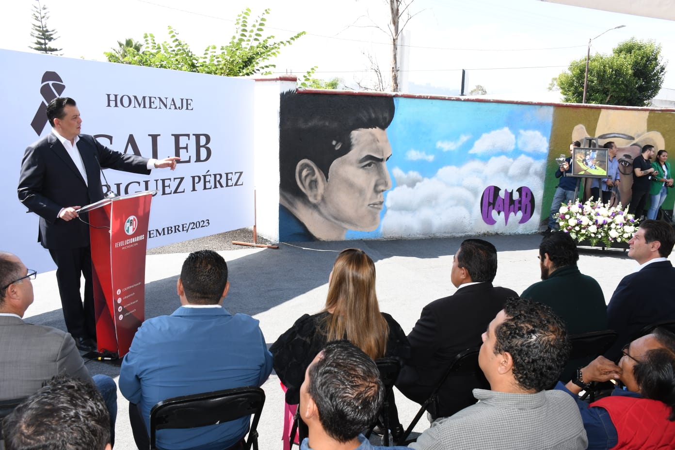 Durante el homenaje póstumo en el cual se develó un mural, obra del artista urbano, Adal Ávalos, el presidente municipal de Morelia, Alfonso Martínez Alcázar, quien fue invitado especial, consideró que el ejemplo de hombres como Caleb Rodríguez, debe prevalecer.