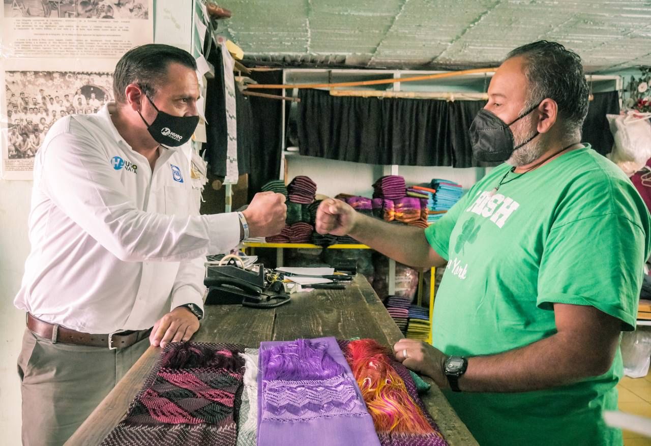 La Piedad, Michoacán, a 06 de Mayo de 2021.- Con la firme convicción de reactivar la economía del Distrito l después de la baja de recursos por la pandemia COVID-19, el candidato a Diputado local, Hugo Anaya, platicó con los artesanos textiles para escuchar sus necesidades y refrendar su apoyo para incentivar a los michoacanos a la compra local.