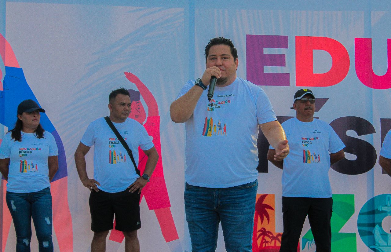 Cd. Lázaro Cárdenas, Michoacàn a 20 de Junio del 2023.- Con una clase de macrogimnasia y carrera de obstáculos, maestros de nivel básico de diferentes grados escolares, llevaron a cabo la clausura de fin de cursos de esta materia en playa Eréndira, un evento al cual asistió el Síndico Municipal, Manuel Esquivel Bejarano; quien agradeció a los directivos, maestros y padres de familia por participar y activarse recreativamente.