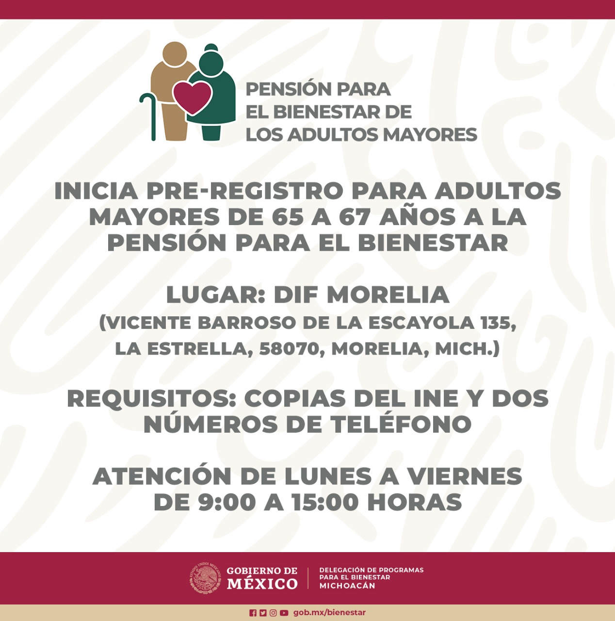 En este momento, en los Centros Integradores de Desarrollo en Morelia se lleva a cabo un pre- registro al programa Pensión Universal para el Bienestar de las Personas Adultas Mayores de 65, 66 y 67 años, mientras se abre el sistema para su incorporación al programa.