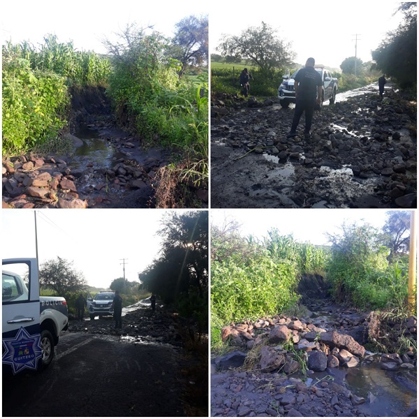 Cuitzeo, Michoacán a 05 de Septiembre de 2021. – Por instrucciones de la Presidenta Municipal de Cuitzeo, personal de la Policía Municipal mantiene un operativo de movilidad preventivo en la comunidad de Rancho Seco, donde las intensas lluvias provocaron un deslave durante la madrugada.