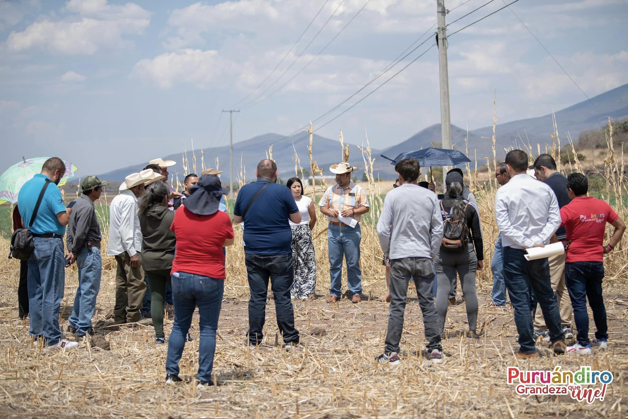 Puruándiro Michoacán a 17 de Mayo de 2023. En la conclusión de su gira de trabajo en la comunidad de La Barranca, el edil de Puruándiro Víctor Manuel Vázquez Tapia se reunió con habitantes del lugar, en el terreno que ellos proponen para instalar su propio panteón.