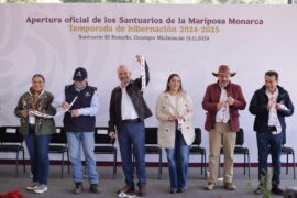 Ocampo, Michoacán, 15 de Noviembre de 2024.- Al realizar la apertura oficial de los tres santuarios de la Mariposa Monarca en el ejido de El Rosario, municipio de Ocampo, el gobernador Alfredo Ramírez Bedolla destacó que desde la administración estatal se impulsan programas como el Guardián Forestal que...