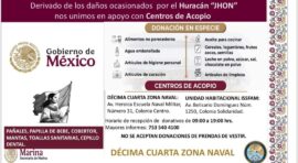 Cd. Lázaro Cárdenas, Michoacàn a 06 de Octubre de 2024. Desde este sábado, la Secretaría de Marina, a través de la Décima Cuarta Zona Naval, ha puesto en funcionamiento dos centros de acopio para apoyar a las familias afectadas por el impacto del huracán «John» en el puerto...