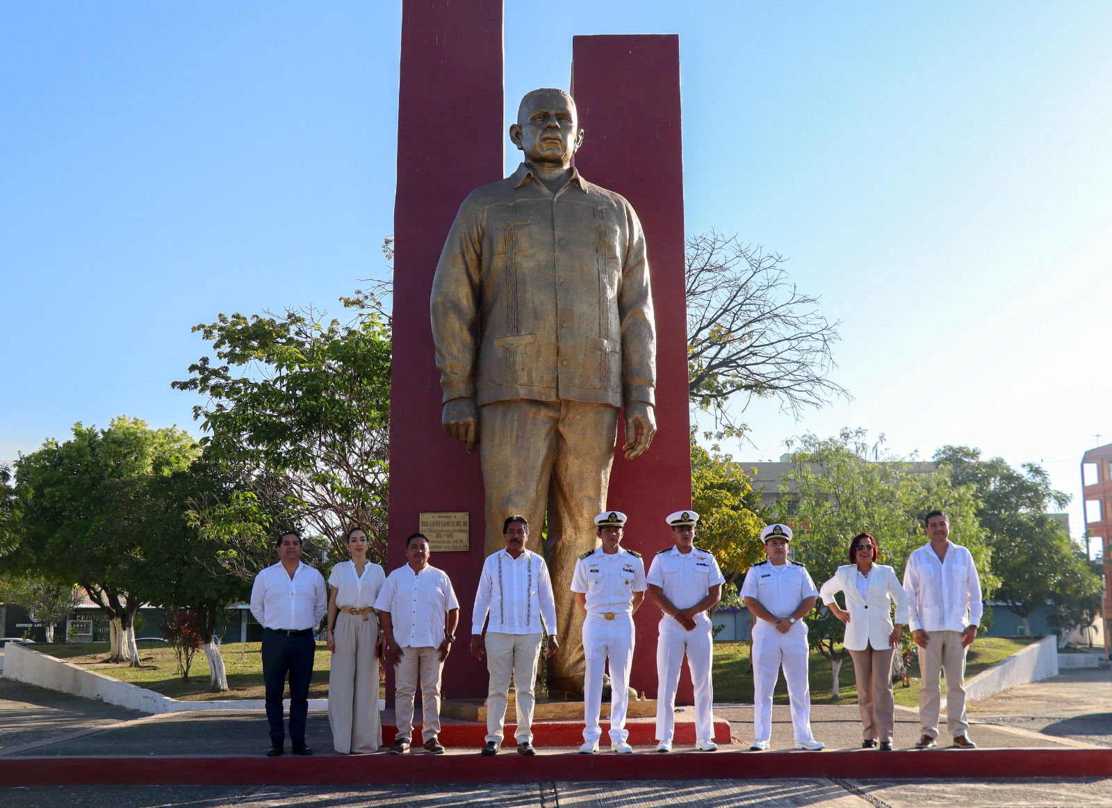 Cd. Lázaro Cárdenas Michocàn 18 de Marzo del 2024.- Con un evento cívico, autoridades municipales, militares y navales conmemoraron el 86 aniversario de la Expropiación Petrolera, el Secretario del H. Ayuntamiento, Horacio Ramírez Pérez, encabezó el acto protocolario frente al monumento del expresidente, Lázaro Cárdenas del Río.