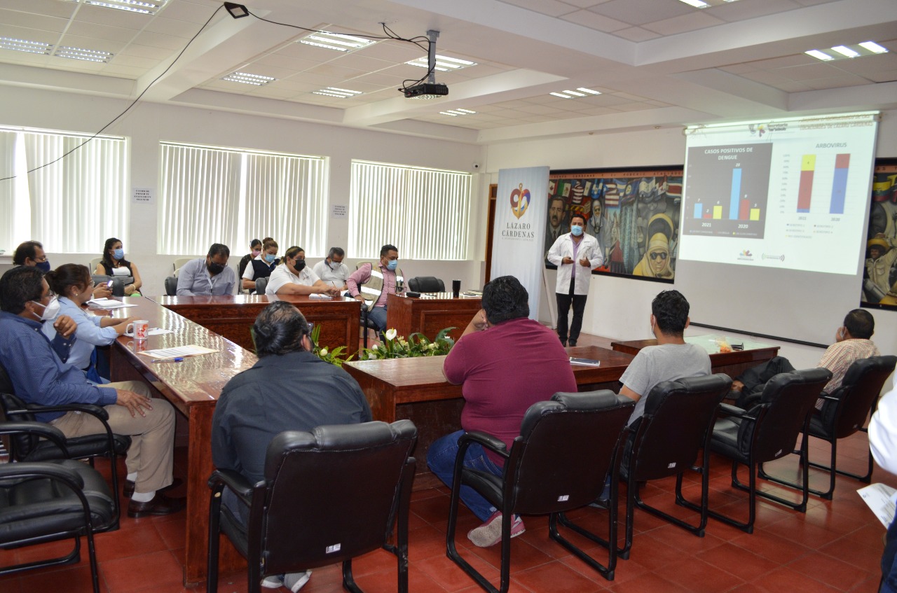 Lázaro Cárdenas, Michoacán; a 23 de junio de 2021.- A fin de evitar el incremento de casos positivos de dengue, autoridades municipales y sanitarias definieron acciones preventivas en varios puntos de Lázaro Cárdenas.