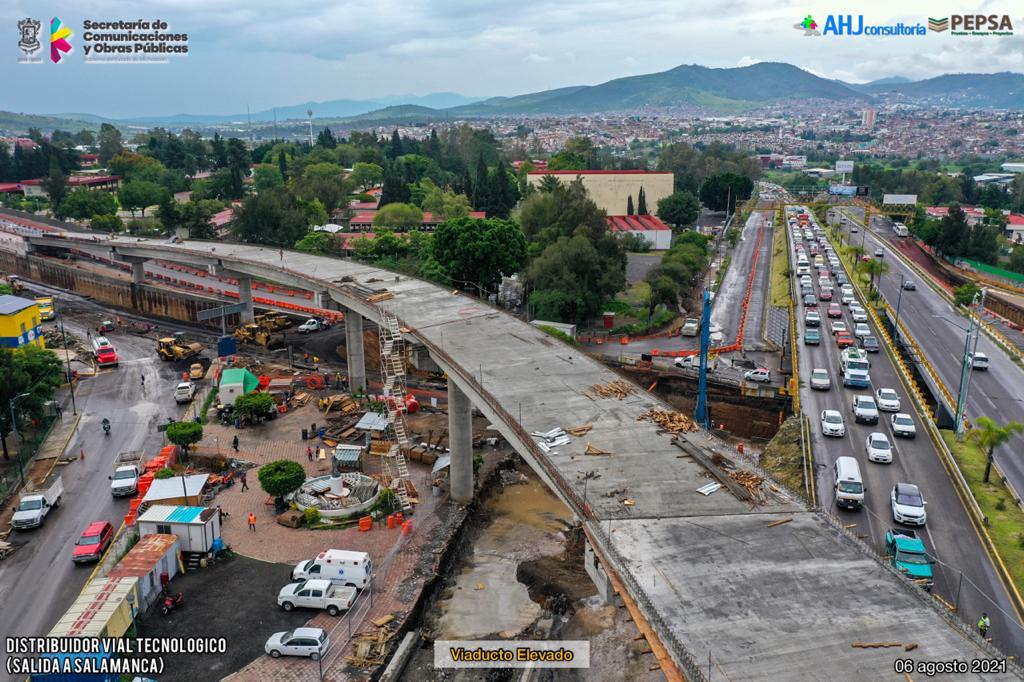 Morelia Morelia, Michoacán, 22 de Agosto de 2021.- Un avance del 65 por ciento registra el distribuidor vial «Tecnológico», en la salida a Salamanca de Morelia, gracias al programa constructivo de la administración estatal del gobernador Silvano Aureoles Conejo, que permite acelerar los trabajos sin condicionar la calidad de los procesos y materiales empleados.
