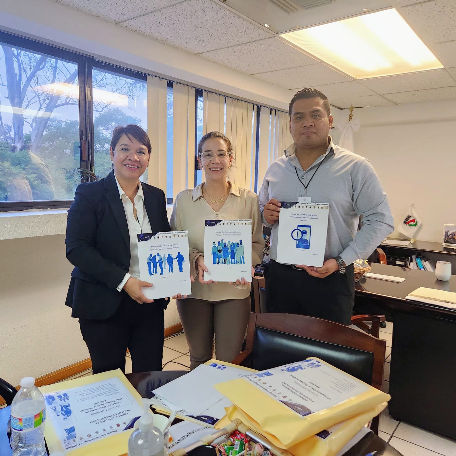 La entrega formal de los manuales fue realizada por la presidenta del CARO y directora general del IEESSPP, Maribel Julisa Suárez Bucio, a la dirección de Apoyo Técnico del SESNSP, encabezada por Katia Rodríguez González.