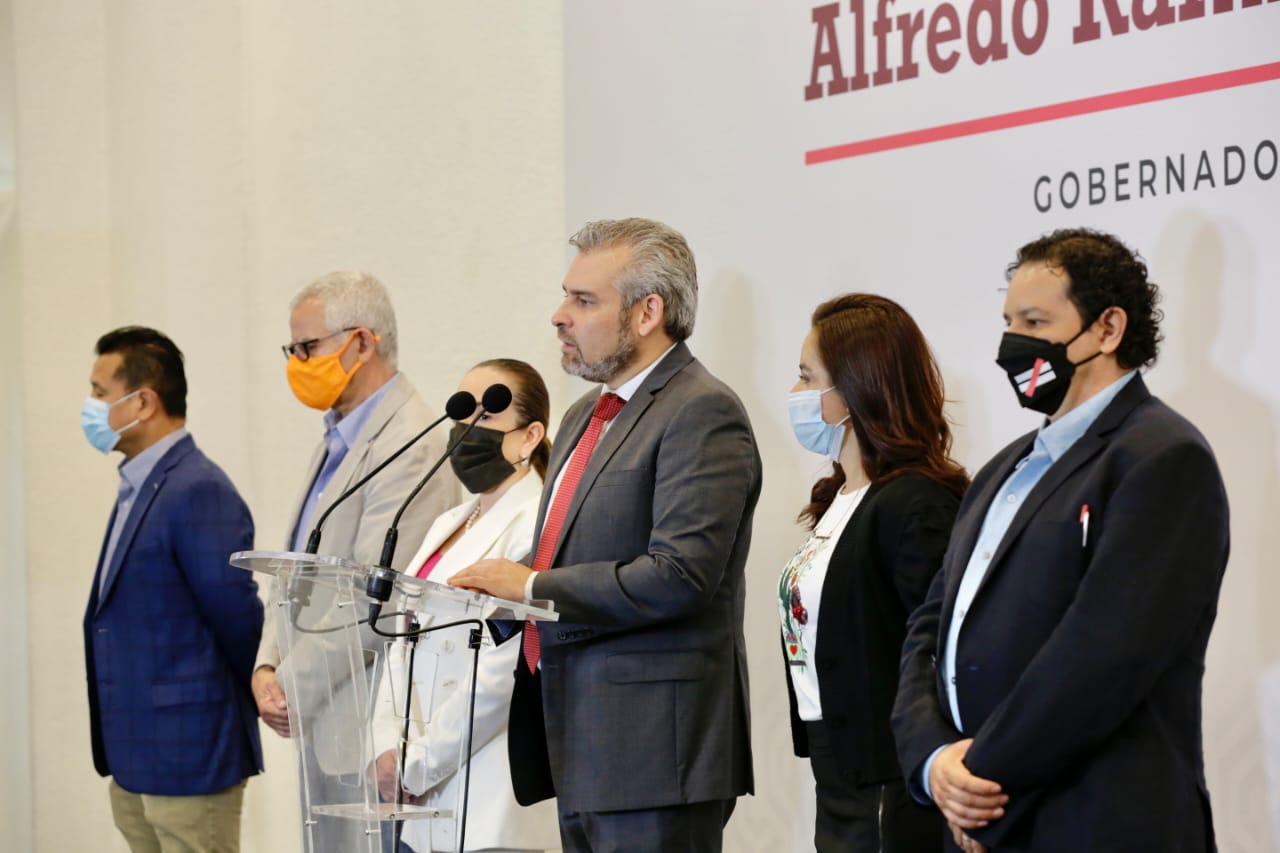 Acompañaron a Alfredo Ramírez en el encuentro con medios de comunicación el diputado federal Hirepan Maya Martínez, e integrantes de su Equipo de Transición: Mercedes Calderón, Marx Aguirre, Isidoro Ruiz Argaiz, y Carlos Torres Piña.