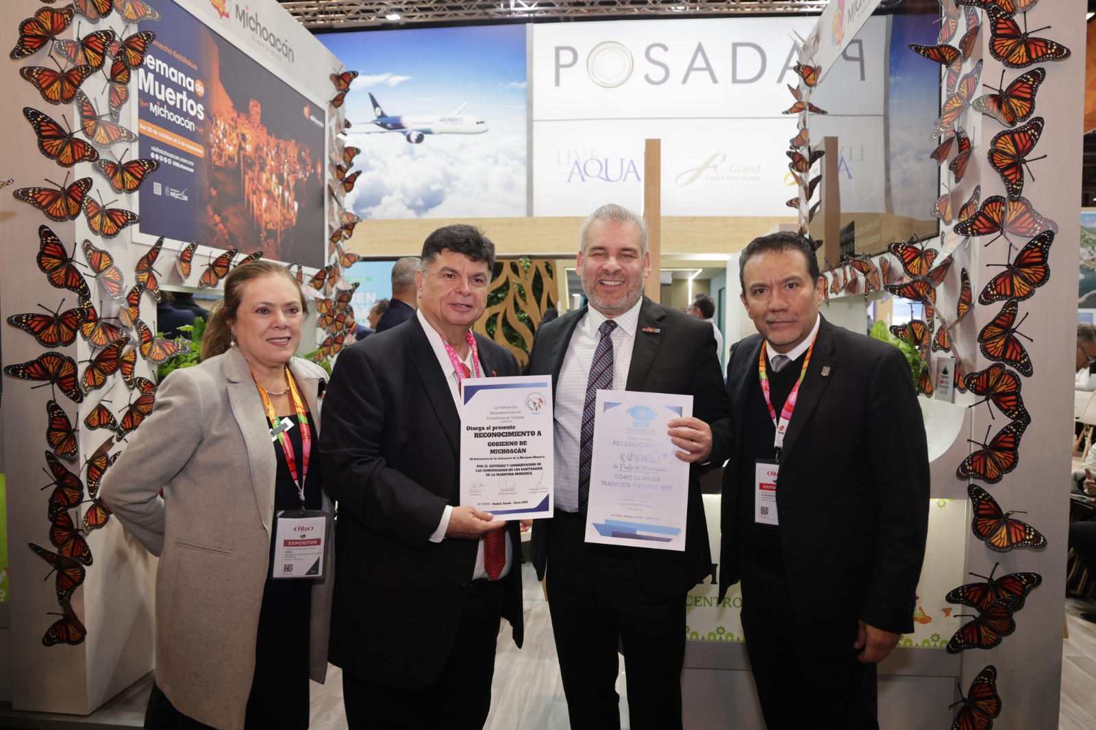 Desde el estand donde se expusieron artesanías de Santa Clara del Cobre y se montó un escenario referente a la Mariposa Monarca, el mandatario invitó a los asistentes y promotores turísticos a conocer Michoacán como un destino seguro y atractivo para visitantes extranjeros.