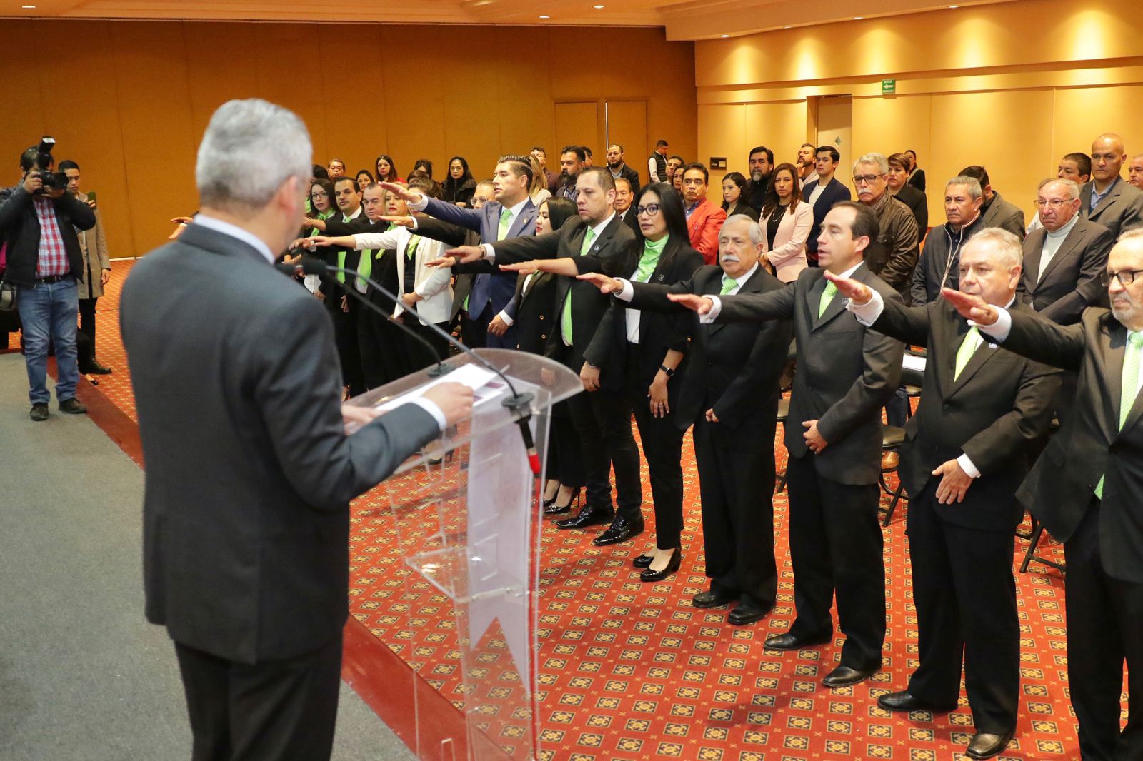 Morelia, Michoacán a 30 de Enero del 2023.- El gobernador Alfredo Ramírez Bedolla tomó protesta al Consejo Directivo 2023-2024 del Colegio de Arquitectos de Michoacán A.C. y ahí, exhortó a los asociados a participar en el diseño de obra pública con proyectos que incluyan el entorno de las obras y de los peatones.