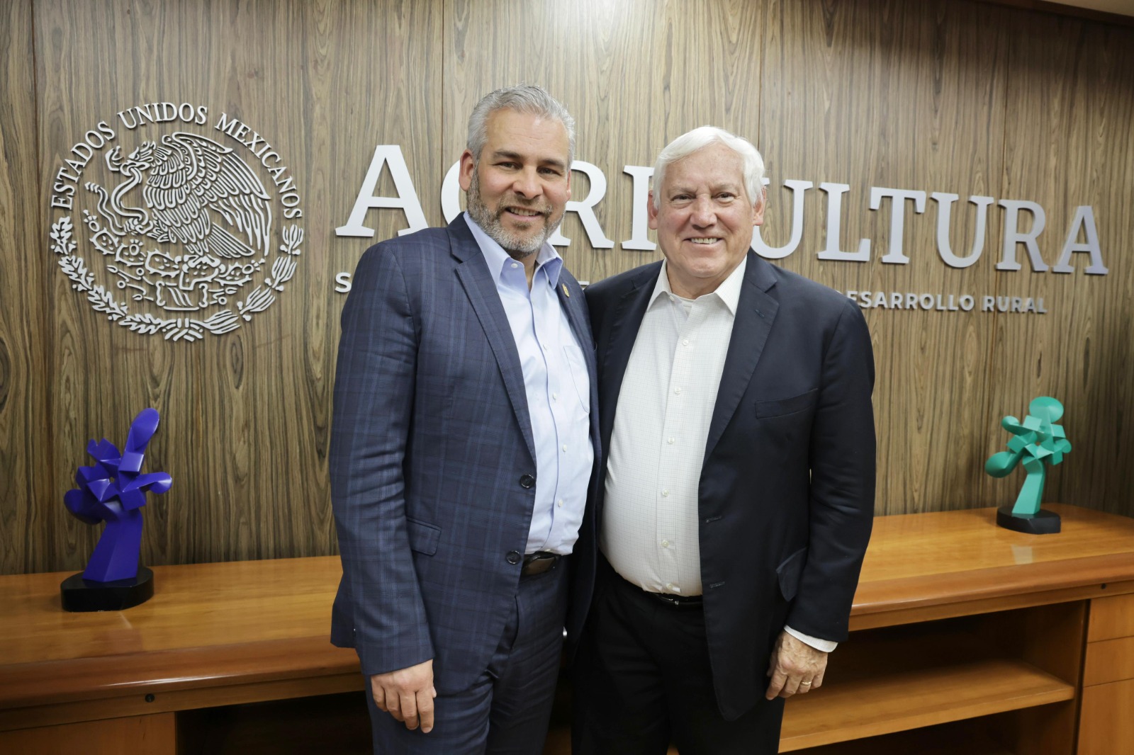 Ciudad de México, 14 de febrero de 2024.- El gobernador Alfredo Ramírez Bedolla y el secretario de Agricultura y Desarrollo Rural (Sader), Víctor Villalobos Arámbula, establecieron ruta de coordinación para el fortalecimiento de la producción sustentable y ordenamiento del aguacate de Michoacán.
