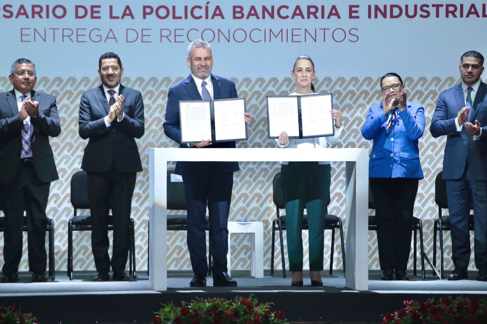 Por su parte, Sheinbaum Pardo, reconoció el trabajo del gobernador con quien dijo, se ha colaborado en distintos rubros y «en la Policía Bancaria Industrial se cuenta con fortalezas importantes por su capacidad de reacción, operación, proximidad e inteligencia, lo que ha permitido reducir en más del 50 por ciento los delitos de alto impacto en la Ciudad de México».