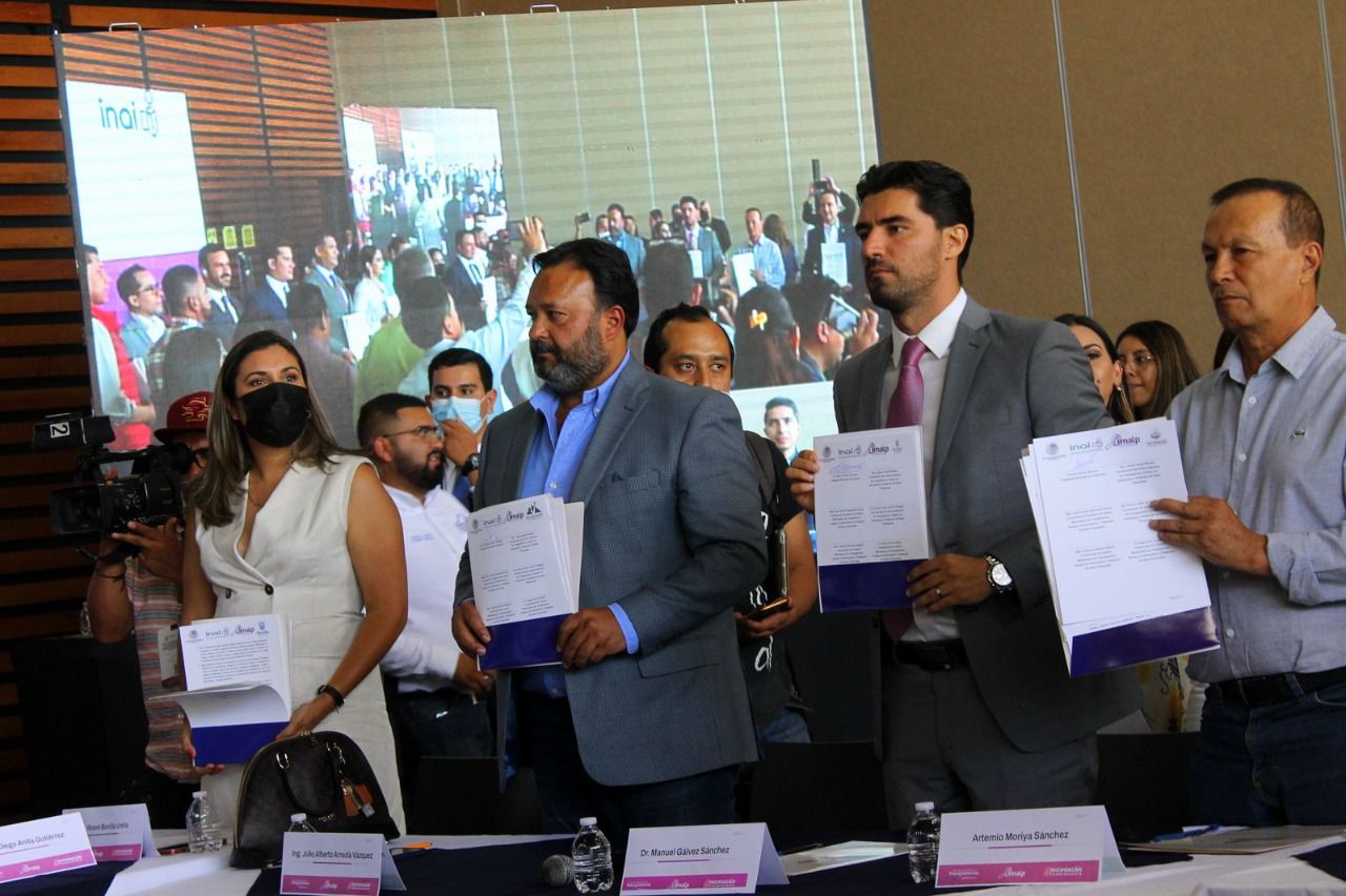 En el marco del 20 Aniversario del IMAIP, la Semana Estatal de Transparencia, acudió esta tarde a las instalaciones Ciudad Universitaria, en donde se llevaron a cabo diversas actividades, entre ellas, la firma de la Declaratoria de los Sujetos del Estado de Michoacán, por parte de 24 Presidentes Municipales, cuyos testigos de honor fueron Arely Yasmilet Navarrete Naranjo, Coordinadora de la Región Centro-Occidente del SNT y Comisionada Presidenta del IMAIP; Adrián Alcalá Méndez, Comisionado del Instituto Nacional de Transparencia y Protección de Datos Personales (INAI); Norma Julieta del Río Venegas, Coordinadora del INAI e integrante de la Comisión Permanente de Tecnologías de la Información; Luis Fernando Aráis Morales, Director General de Tecnologías de la Información del INAI; Abraham Montes Magaña, Comisionado del INAI; el Regidor de Transparencia y Acceso a la información, Felix Cazárez Rodríguez y el Director de Transparencia del Ayuntamiento de Pátzcuaro, Juan Abraham Suárez Coria, entre otras personalidades.
