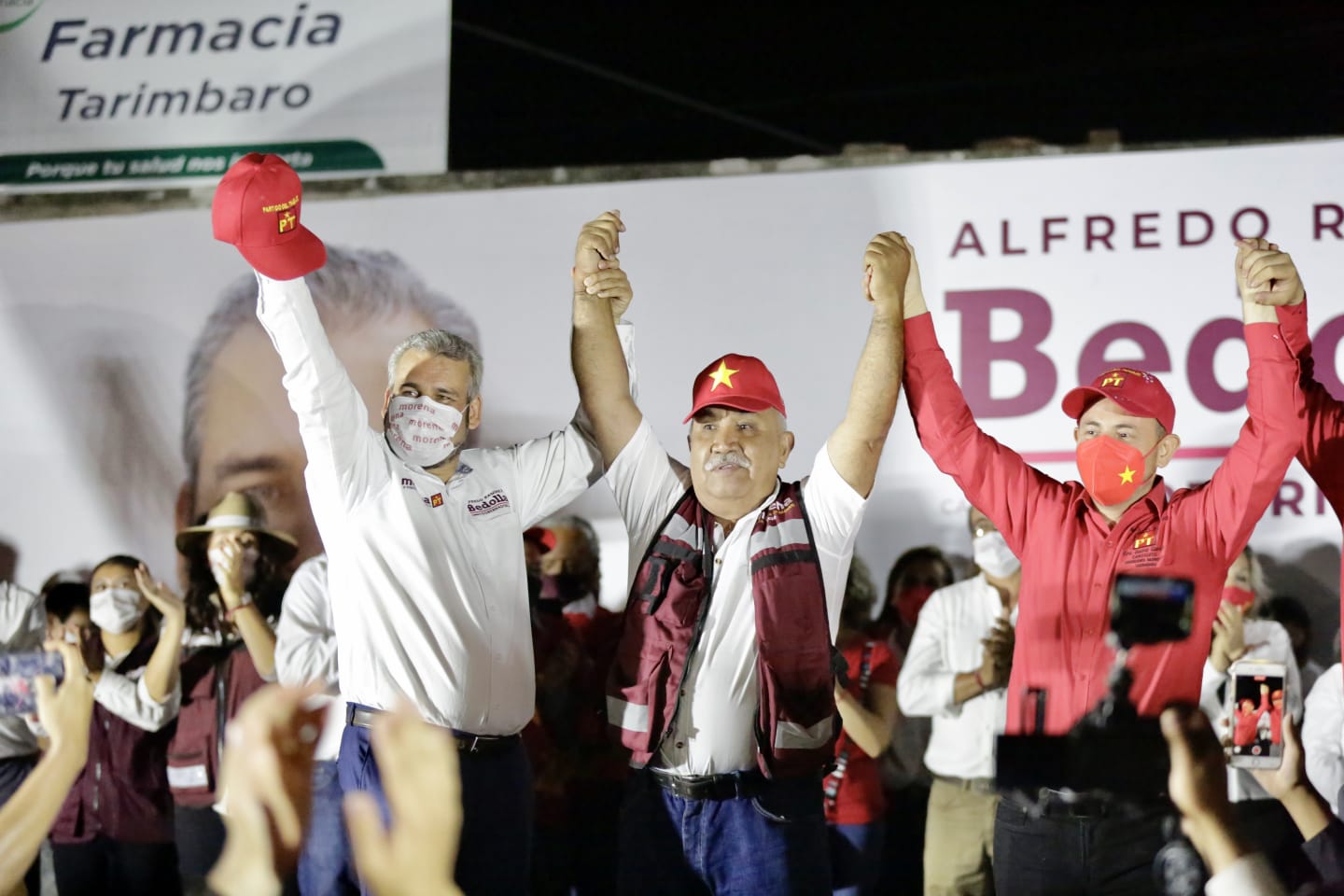 Morelia y Tarímbaro, 25 de mayo de 2021.- “Este día estamos 12 puntos arriba en las encuestas, es el resultado del trabajo duro a ras de tierra de todas y todos; casa por casa, colonia por colonia, comunidad por comunidad, para que las michoacanas y michoacanos conozcan nuestro proyecto, pero no hay que aflojar el paso”, afirmó Alfredo Ramírez Bedolla ante más de 4 mil simpatizantes en Morelia y Tarímbaro.