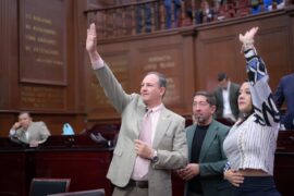 Morelia, Michoacán, a 2 de abril de 2025. El diputado Toño Mendoza, integrante del Grupo Parlamentario de Morena en el Congreso de Michoacán, celebró la aprobación de la iniciativa que presentó junto a sus compañeras y compañeros diputados para garantizar los derechos humanos de niñas, niños, adolescentes y...