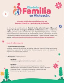 Morelia, Michoacán, a 13 de Febrero del 2025.- Las diputadas Teresita Herrera Maldonado y Belinda Hurtado Marín, que integran la Comisión para el Desarrollo Integral de la Familia en el Congreso del Estado, invitan a participar en la convocatoria “Reconocimiento a las Buenas Prácticas con Enfoque de Familia”....
