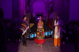 Morelia Michoacán a 07 de septiembre de 2024. Artesanas y artesanos michoacanos enamoraron con sus textiles y nuevos diseños al público asistente a la pasarela Joparani, que se realizó en la Casa de las Artesanías La presidenta honoraria del Patronato del Sistema DIF Michoacán, Grisel Tello Pimentel, homenajeó...