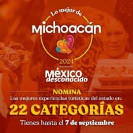 Morelia, Michoacán, 5 de Septiembre de 2024.- El tiempo se agota y Michoacán requiere de ti para demostrar porqué es el Alma de México. Este sábado 7 de septiembre cierra la etapa de postulación a los premios “Lo Mejor de Michoacán”, que organiza la revista México Desconocido en...