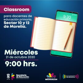Morelia, Michoacán, a 20 de octubre de 2020.- Seguir fortaleciendo los conocimientos y herramientas virtuales que permitan a las y los docentes michoacanos mejorar los procesos de enseñanza-aprendizaje con sus alumnos, es prioridad de la Secretaría de Educación en el Estado (SEE). Es así que el próximo miércoles 21...