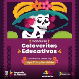 Morelia, Michoacán, 26 de octubre de 2020.- La Secretaría de Educación en el Estado (SEE), invita a todas las y los estudiantes de educación básica y media superior y superior a participar en el Concurso de Calaveritas Educativas, a efecto de fomentar las tradiciones y fortalecer la identidad...