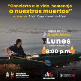 Morelia, Michoacán; a 2 de noviembre de 2020.- Para continuar celebrando desde casa una de las tradiciones más representativas de Michoacán y de México: la noche de Muertos, la Secretaría de Educación en el Estado (SEE) transmitirá el “Concierto a la vida, homenaje a nuestros muertos”. Este evento promovido...