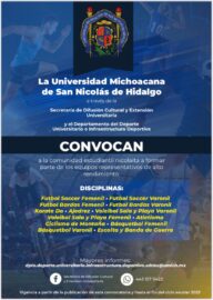 Morelia, Michoacán, a 30 de enero de 2023.- Todas y todos los interesados en formar parte de los equipos representativos de alto rendimiento de la Universidad Michoacana de San Nicolás de Hidalgo (UMSNH), es el momento para que se inscriban, anunció el secretario de Difusión Cultural y Extensión...