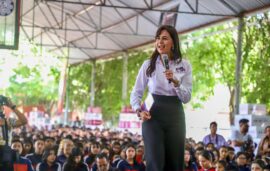 Morelia, Michoacán a 03 de Septiembre de 2024. Junto al gobernador Alfredo Ramírez Bedolla, la secretaria de Educación, Gabriela Molina Aguilar, aseguró que en este Ciclo Escolar 2024-2025, se fortalece la estrategia para hacer frente al abandono escolar. En el arranque de entrega de tenis del programa Jalo...