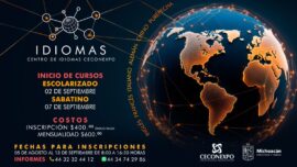 Morelia, Michoacán, 14 de Agosto de 2024.- El Centro de Idiomas del Centro de Convenciones y Exposiciones de Morelia (Ceconexpo) inició las inscripciones para los cursos de inglés, alemán, italiano, chino, francés y purépecha. Si deseas aprender un nuevo idioma o lengua, tienes hasta el 13 de septiembre...