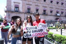 Morelia, Michoacán 12 de Agosto de 2024.- En el marco del Día Internacional de la Juventud, la Secretaría de Salud de Michoacán (SSM) y el Centro Ambulatorio para la Prevención y Atención en Sida e Infecciones de Transmisión Sexual (Capasits) distribuyeron 2 mil condones en el Centro Histórico...
