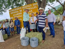 Coalcomán, Michoacán, 10 de agosto de 2024.- Como parte del impulso a la ganadería de Michoacán, la Secretaría de Agricultura y Desarrollo Rural (Sader) entregó este sábado 34 sementales de registro y 500 rollos de alambre de púas a productores de Coalcomán. Con la entrega de sementales de...