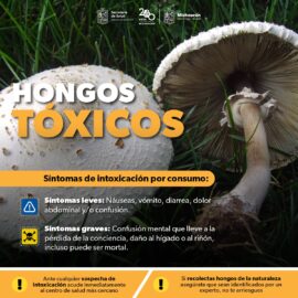 Morelia, Michoacán, 7 de Agosto de 2024.- La Secretaría de Salud de Michoacán (SSM) alerta a la población sobre los riesgos de consumir hongos tóxicos, como el denominado falso paraguas o sombrilla, ya que pueden ocasionar confusión mental, pérdida de la conciencia, daños al hígado o riñón e...