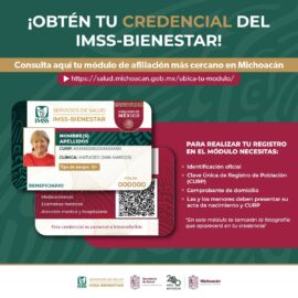 Morelia, Michoacán a 03 de Agosto de 2024.- En Michoacán ya son 36 los módulos de afiliación al IMSS Bienestar a los que puedes acudir de lunes a viernes para solicitar tu credencial con la que podrás acceder a consultas, medicamentos, estudios de laboratorio y cirugías sin costo...