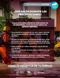 Morelia, Michoacán, 5 de Julio de 2024.- Ante la temporada de lluvias, la Secretaría de Salud de Michoacán (SSM) emite las siguientes recomendaciones a la población. Es importante limpiar desagües, canales, tuberías y coladeras de manera permanente durante la temporada, para evitar encharcamientos, así como no tirar basura...