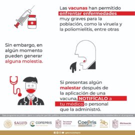 Morelia, Michoacán, 13 de Junio de 2024.- Si presentas algún malestar y te sientes mal después de la aplicación de una vacuna, puedes notificarlo a tu médico o personal que lo administró, pues si bien los biológicos han permitido enfrentar enfermedades muy graves, como la viruela y la...