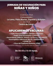 Coahuayana, Michoacán, 11 Junio de 2024.- Para proteger a niñas y niños de enfermedades mortales, la Secretaría de Salud de Michoacán (SSM) realizará brigadas de vacunación casa por casa los días 12 y 13 de junio en los municipios de Coahuayana y Aquila. Personal de la SSM, debidamente...
