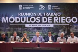 Morelia, Michoacán, 3 de Abril de 2024.- El gobernador Alfredo Ramírez Bedolla y representantes de los 45 módulos del agua del estado acordaron trabajar en conjunto para cuidar y mejorar el uso de este recurso para el consumo humano y actividades agrícolas. En la reunión donde se expusieron...